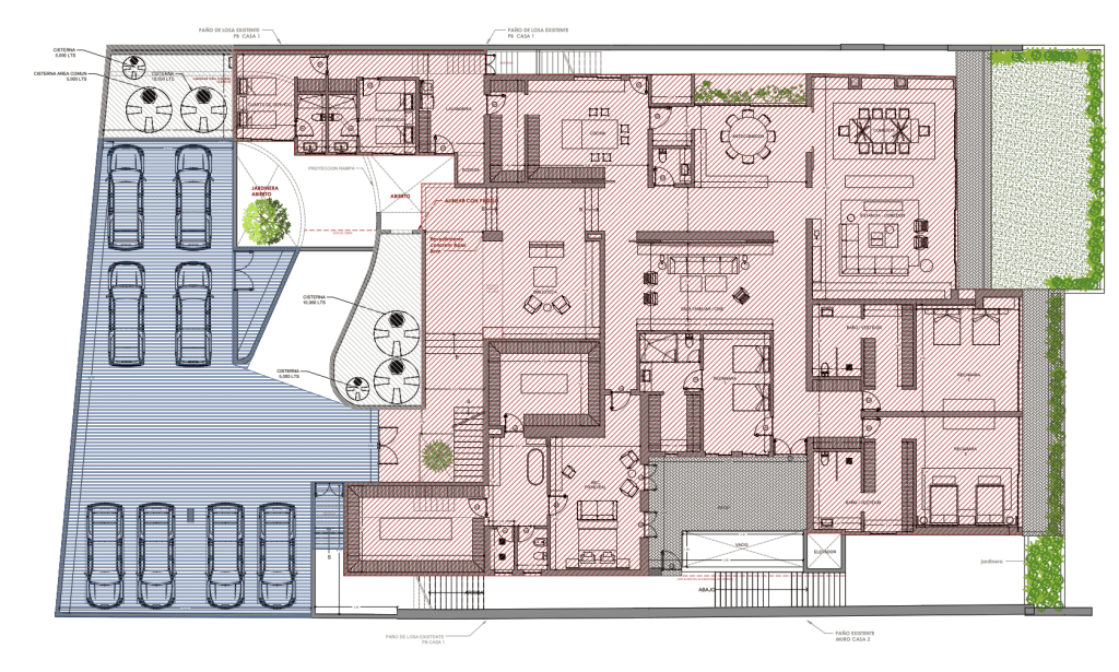 Cada residencia ofrece más de 1,200 m² de construcción, incluyendo amplias terrazas, patios techados y estacionamientos.
